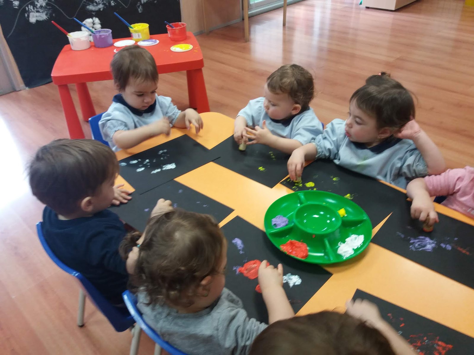 Hem fet la nostra primera obra d'art amb taps de suro i pintura de diferents colors. Ens ha quedat molt maco.